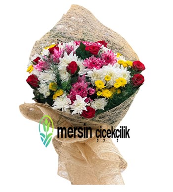 Kırmızı gül buketi, beyaz krizantem aranjmanı, sarı papatya buketi, pembe çiçek kombinasyonu, romantik çiçek aranjmanı, Mersin çiçek gönder, aynı gün çiçek teslimatı, özel gün çiçekleri, şık çiçek buketi, Çiçek Gider özel tasarım