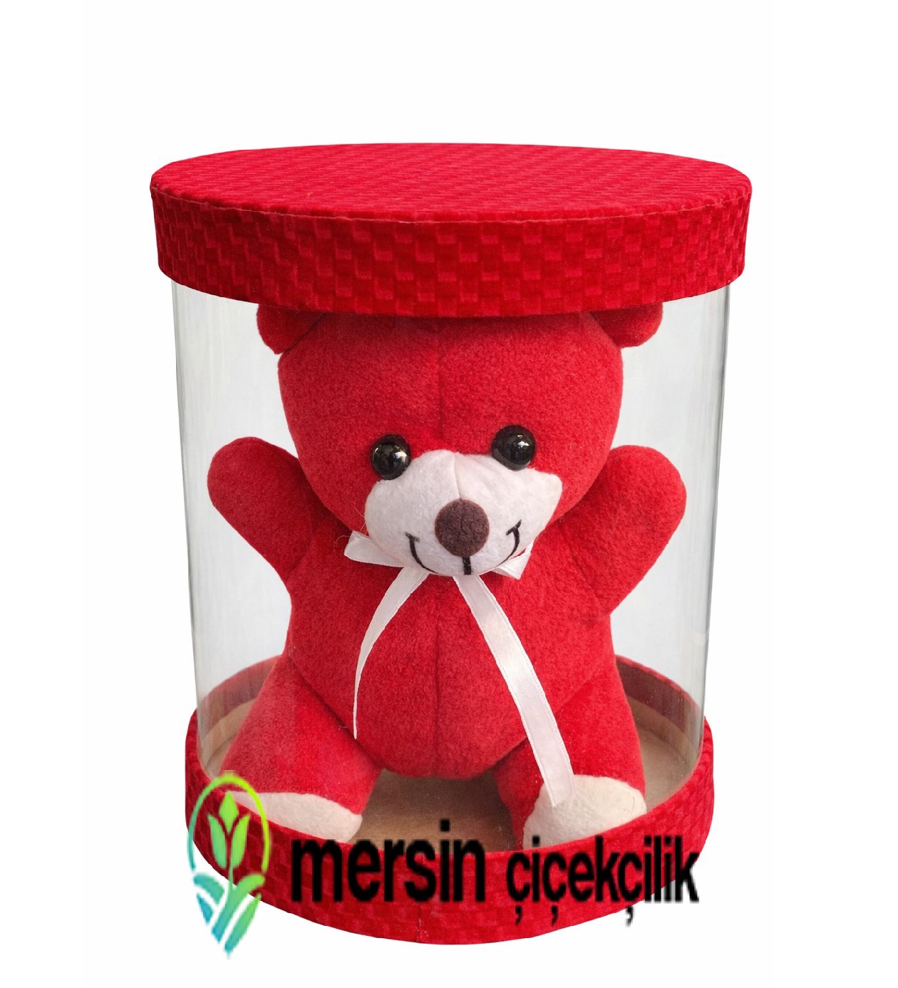 Şeffaf silindir kutu içerisinde sunulan kırmızı peluş ayıcık, hem zarif hem de uzun süre saklanabilecek dekoratif bir üründür. Canlı kırmızı rengi aşkı temsil ederken, yumuşak peluş dokusu sıcak bir his bırakır. Özellikle çiçekle birlikte gönderildiğinde etkisi katlanır 🌹✨