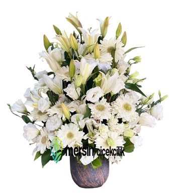 Özenle seçilen taze çiçeklerle hazırlanan Beyaz Asalet Çiçek Aranjmanı, hem şık vazosu hem de göz alıcı dolgun tasarımıyla bulunduğu ortama ferahlık ve huzur katar. Mersin çiçekçi denildiğinde akla gelen kalite ve güven anlayışıyla hazırlanan bu aranjman; doğum günü, yeni iş tebriği, geçmiş olsun, teşekkür ve özel günlerde gönül rahatlığıyla tercih edilebilir 🌸