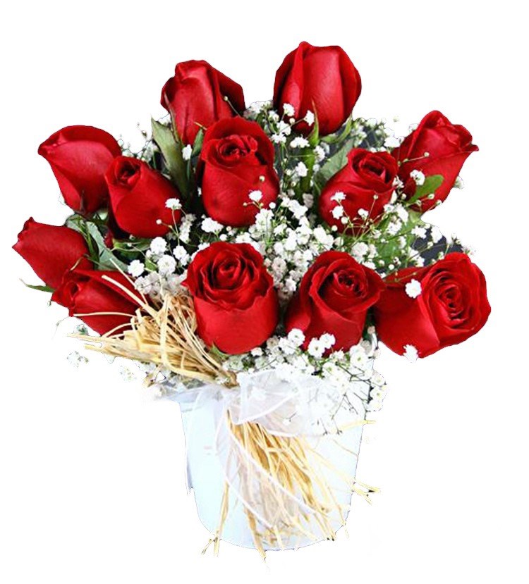 Beyaz Seramik İçersinde Aşkın Simgesi 12 'lİ Gül Aranjmanı