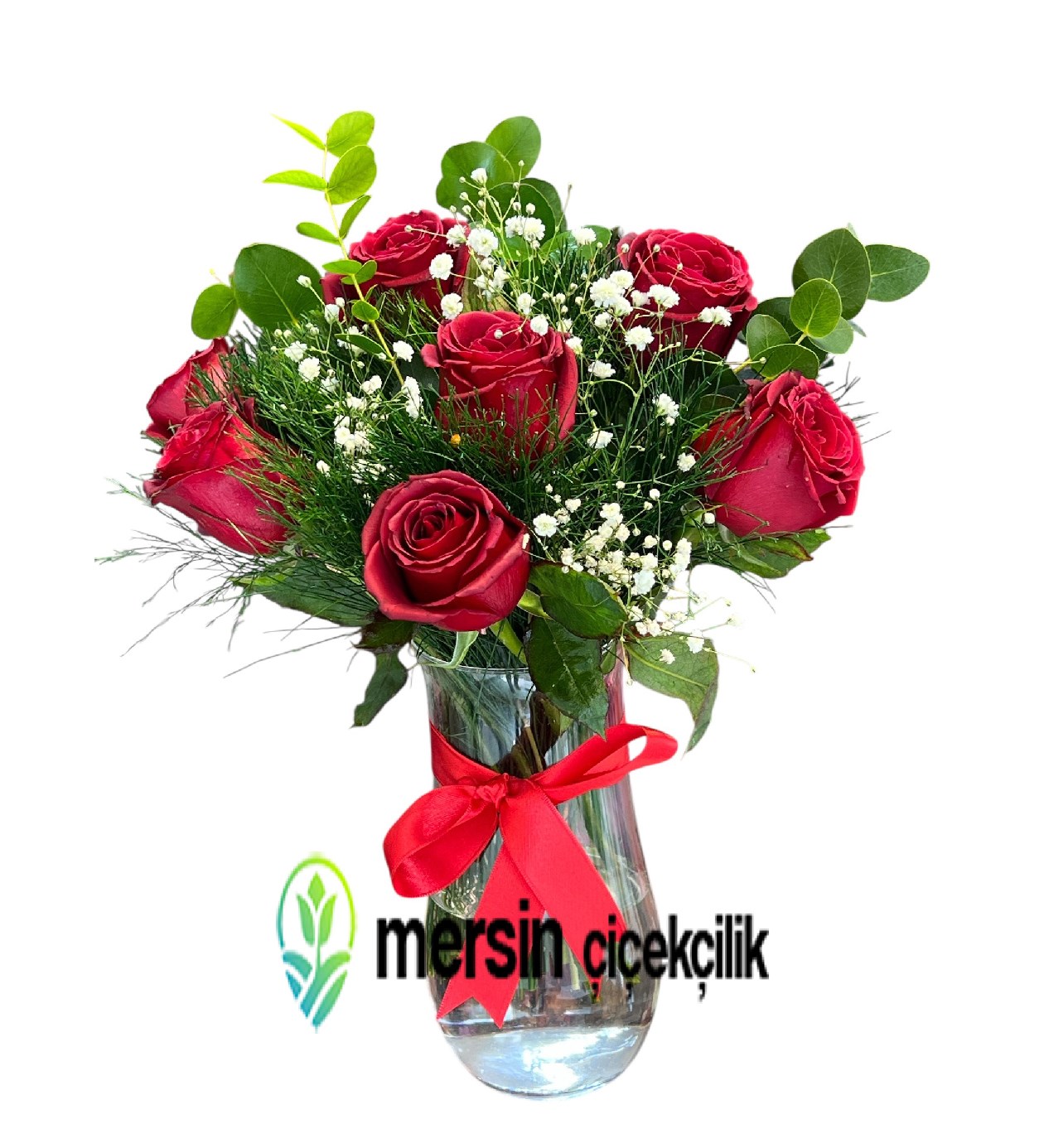 "Mersin Çiçekçilik, sevginizi ifade etmenin en güzel yolu! Silindir vazoda yer alan 7 kırmızı gül, tutkulu duygularınızı en zarif şekilde iletmek için tasarlandı. Kaliteli çiçeklerimizle sevdiklerinize unutulmaz anlar yaşatın. Mersin Çiçekçilik ile duygularınız renk bulsun!"
