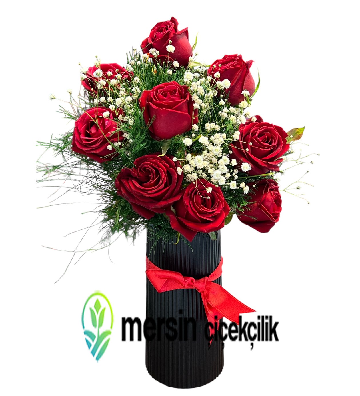 Siyah Vazoda 9 Kırmızı Gül – Mersin Çiçekçilik